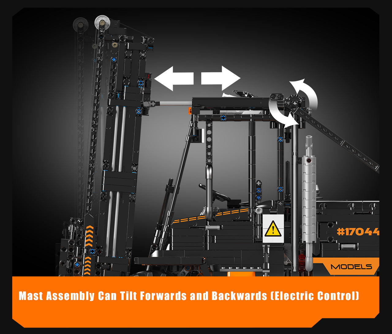 The forklift's towering presence is matched by its functional prowess, featuring electrically controlled two-stage lifting and a mast assembly that can tilt forwards and backwards, adding realism to your logistical simulations. It also boasts a modular quick-release design on both the tail and side panels, inviting enthusiasts to delve into the model's internal mechanics.