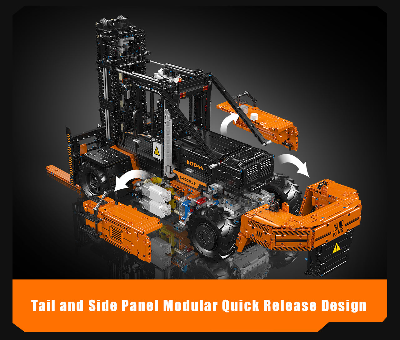 In collaboration with designer Kevin Moo, Mould King presents the the flagship 1:6 scale Heavy-Duty Forklift, engineered with a staggering 4,579 pieces. This mechanical marvel is not just about scale; it's about sophisticated operation with the MK+ Hall sensor motor control system, enabling a supremely smooth remote-control experience.