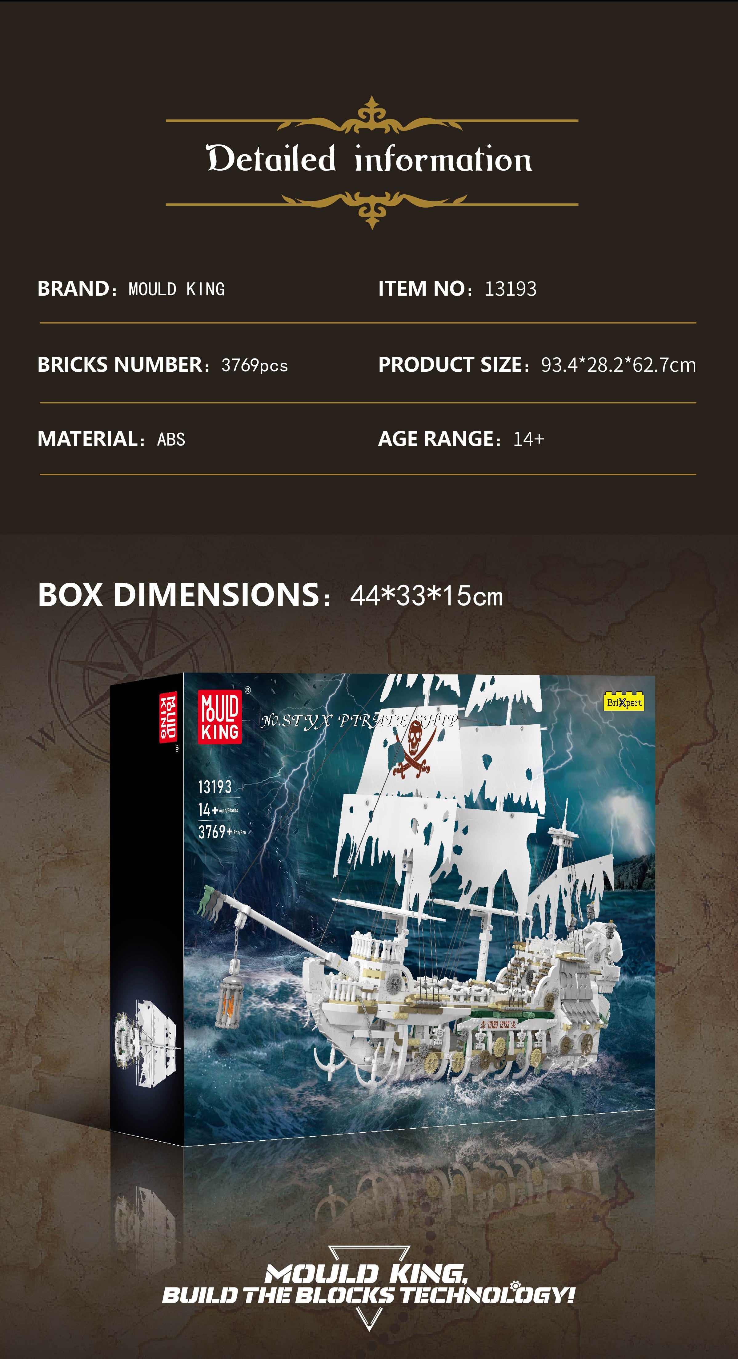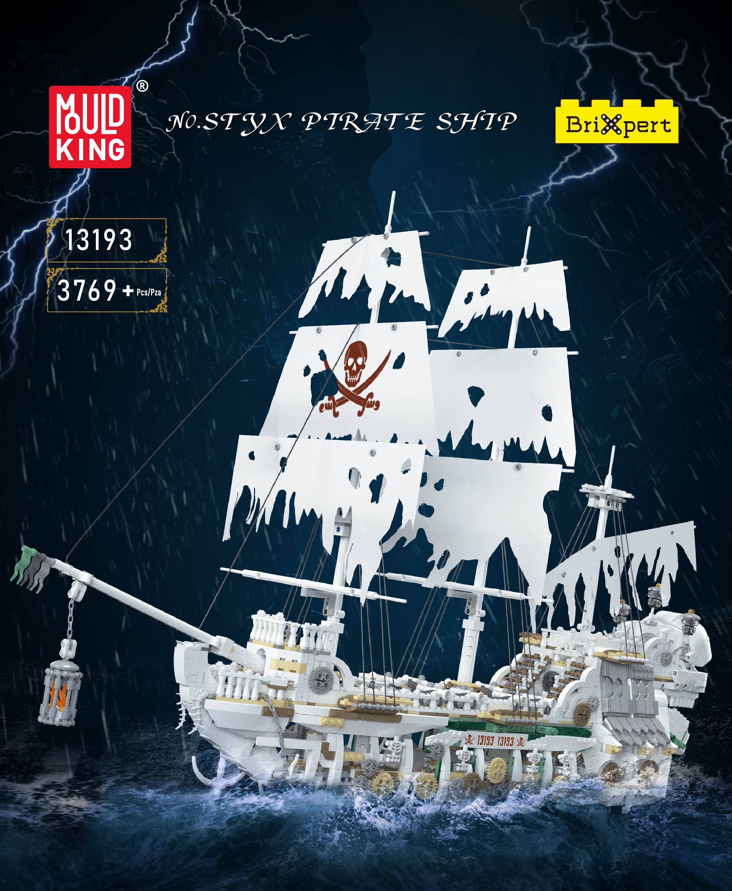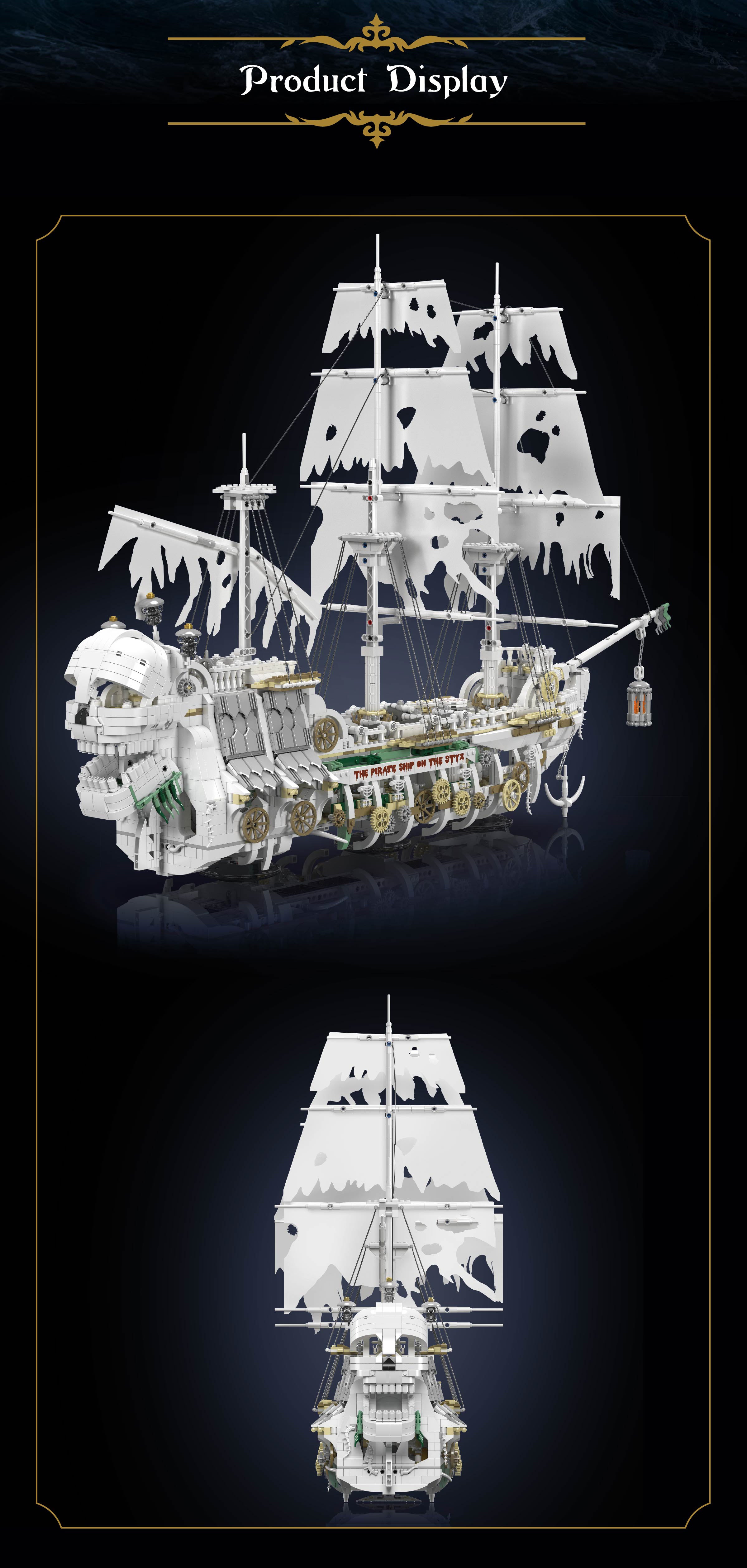 Set sail into the haunting world of pirates with the Mould King 13193 Styx Pirate Ship, a massive 93cm long model that challenges adventurers to explore its ghostly decks.