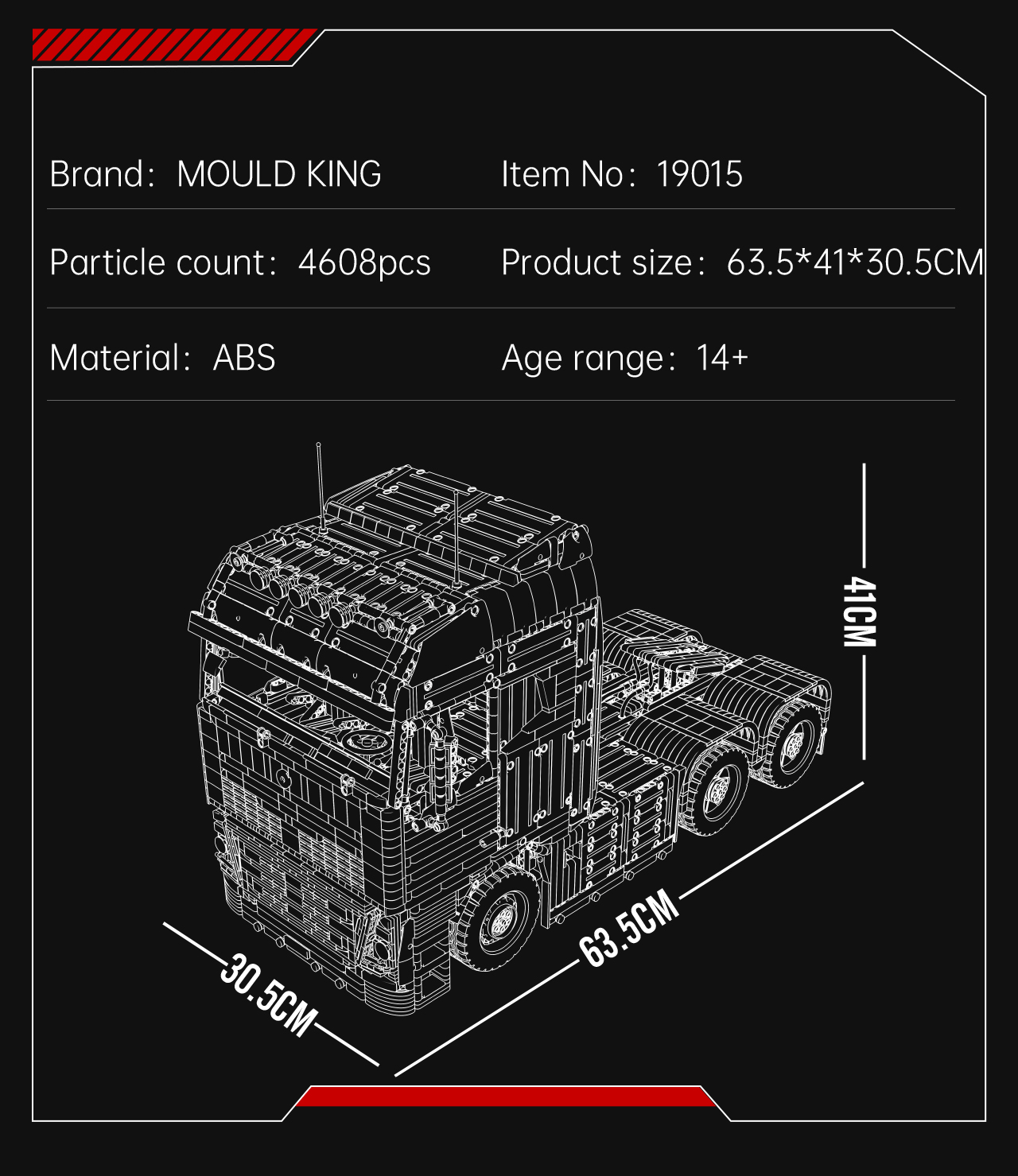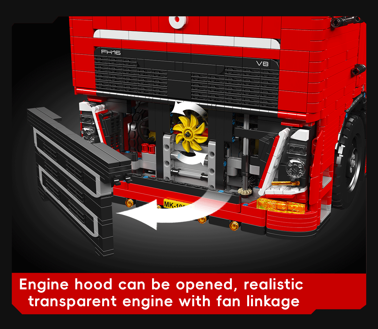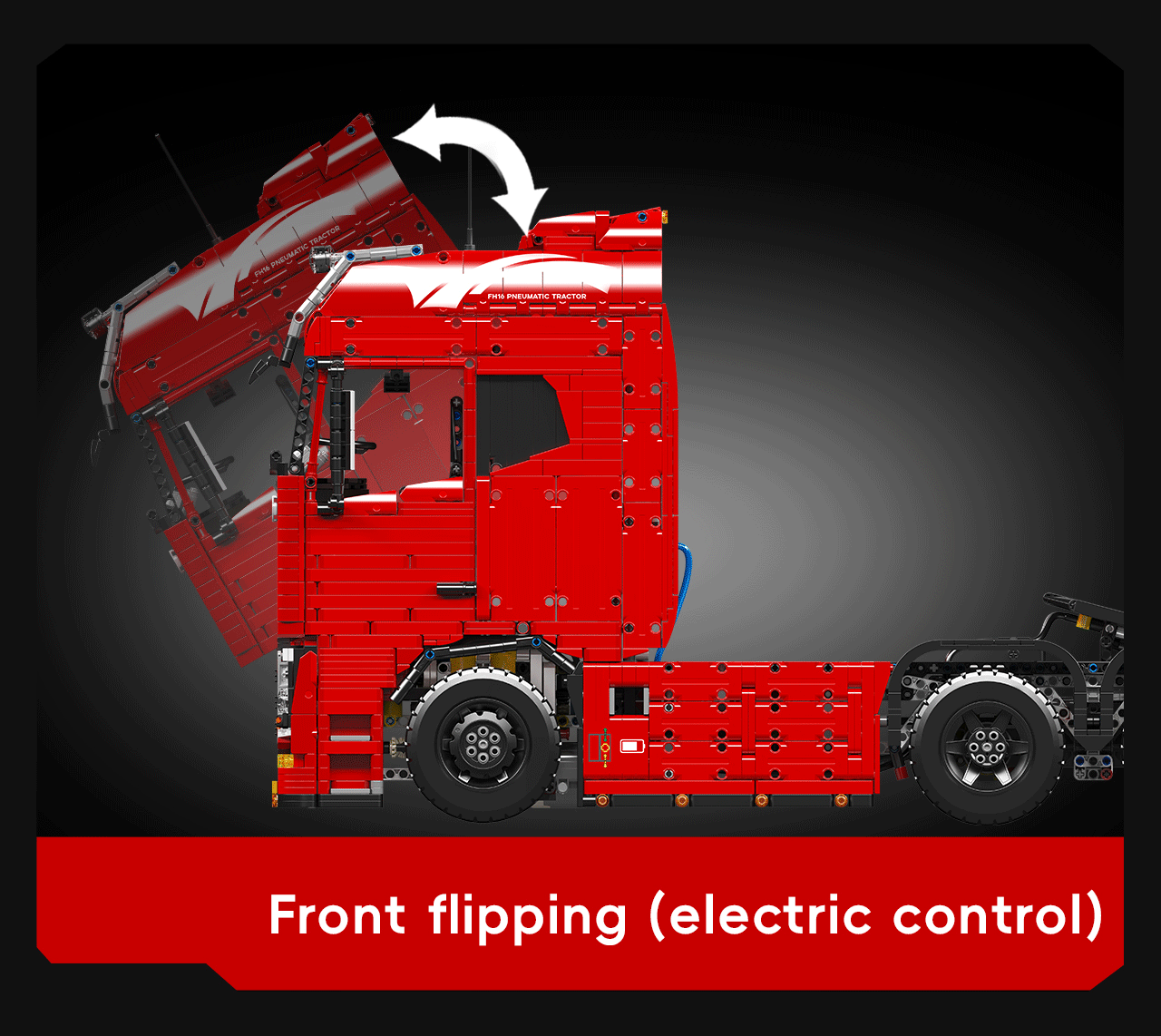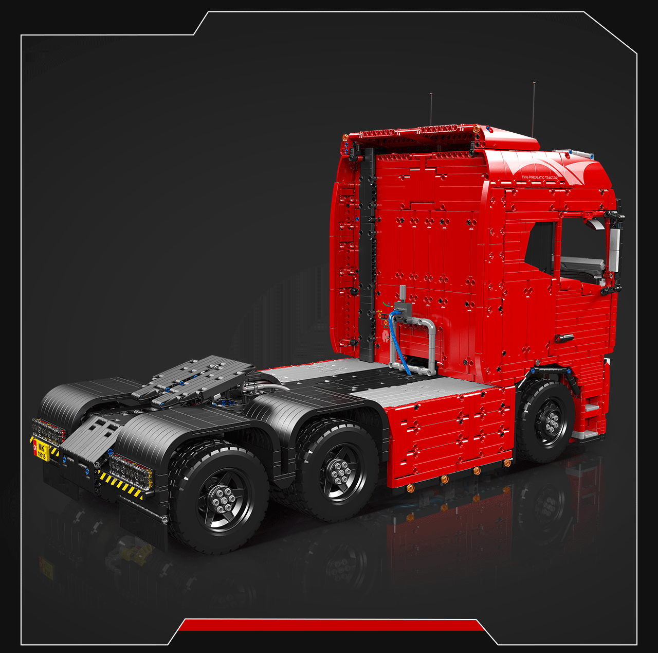 The Mould King 19015 FH16 is a fully remote-controlled pneumatic tractor truck that brings advanced features and enhanced playability. This model upgrades from the Mould King 19005 by incorporating a 6.0 module that supports a six-channel remote controller with variable speed control.