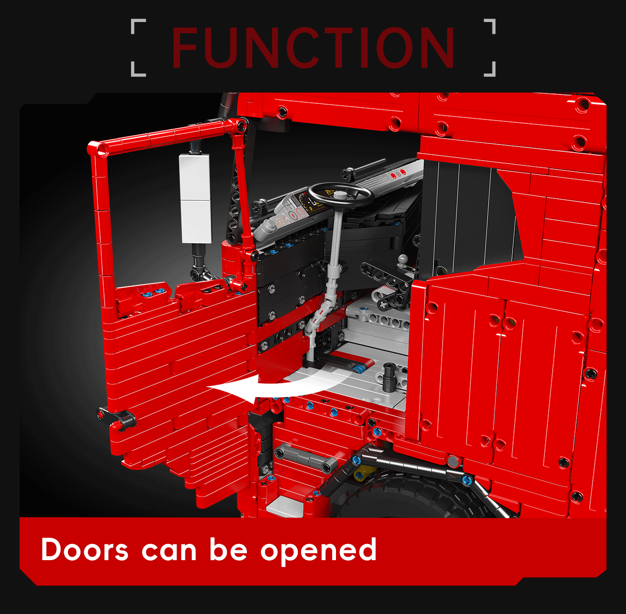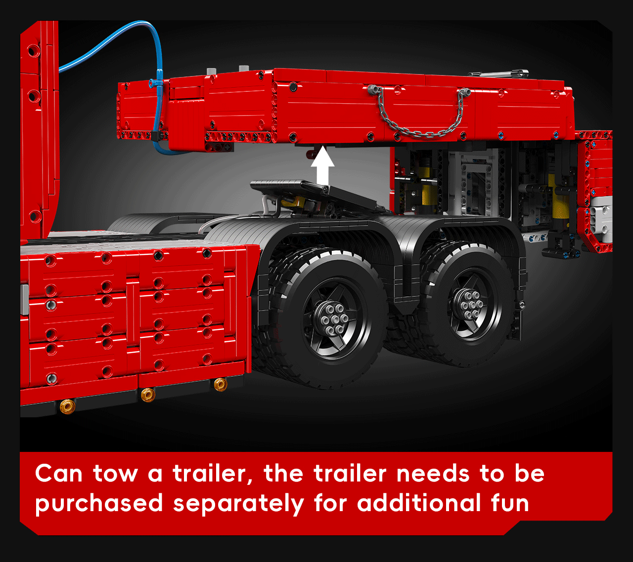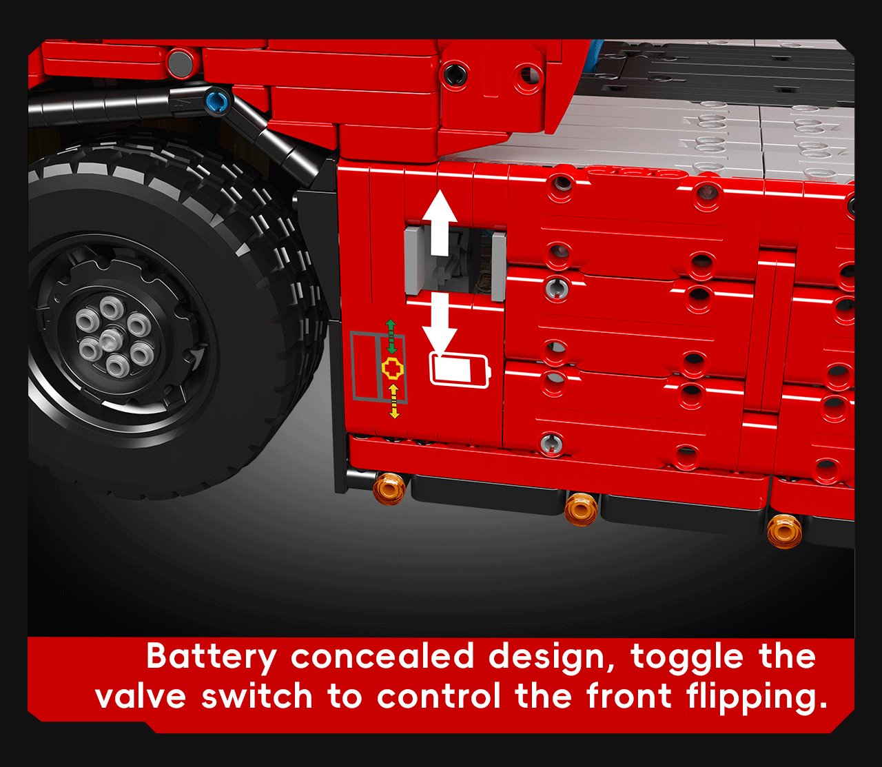 The truck's advanced drivetrain is powered by five high-torque electric motors, supplemented by three servo motors to ensure precise control. Every movement is controlled via a fully remote system, providing a comprehensive and engaging user experience.