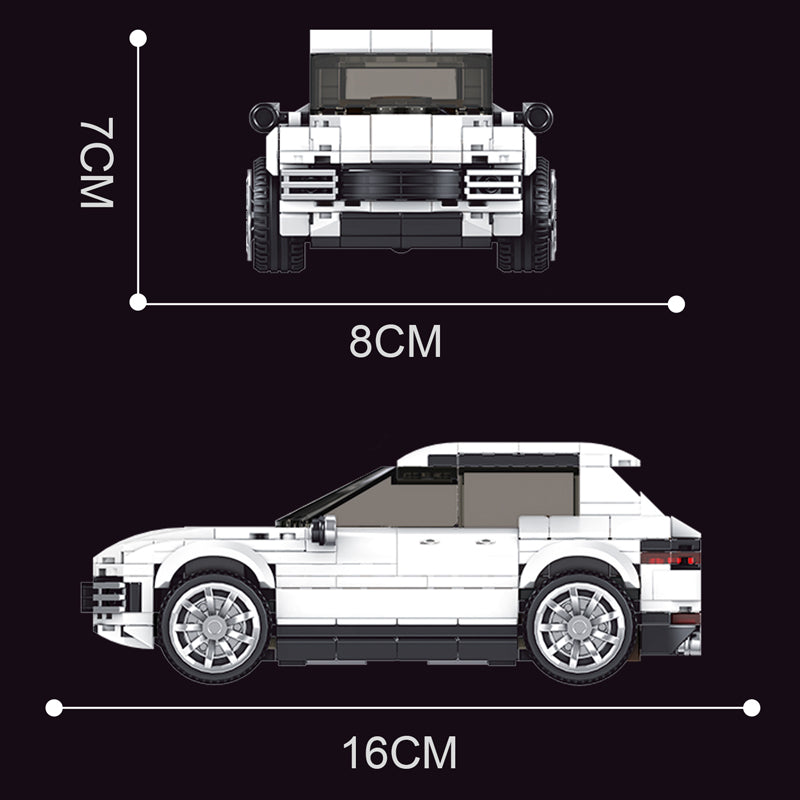 The Mould King® Cayenne car model is created with 415 pieces and designed for ages 8 and up. The car model features Gorgeous interior decoration and exquisite tail lights, and the rich front and rear body details, aggressive styling and high fidelity interior fittings restore the details of a real car.
