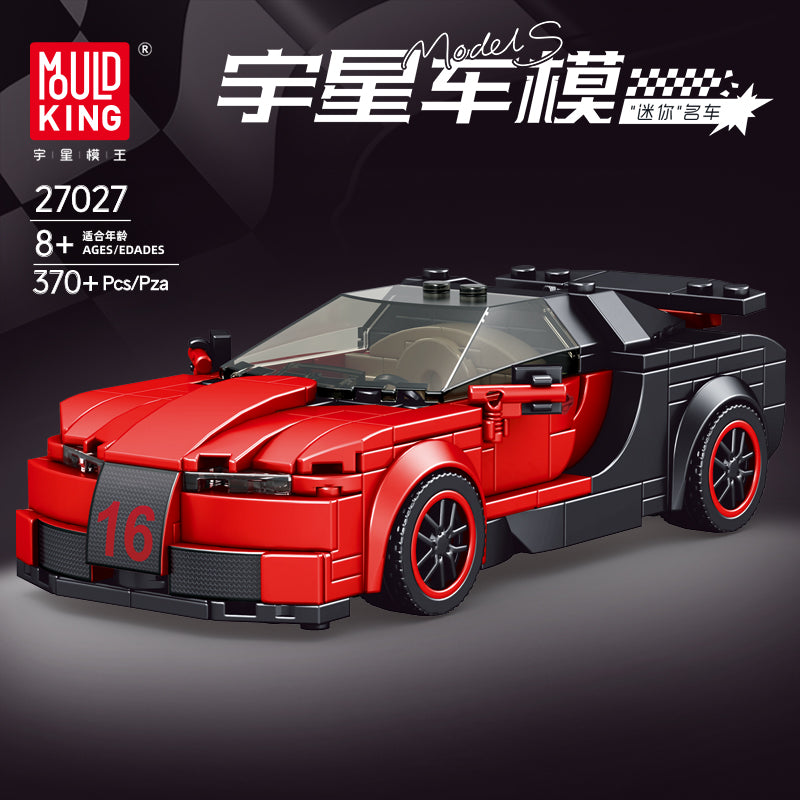 The Mould King® Veyron car model is created with 370 pieces and designed for ages 8 and up. The car model has a steering wheel, a streamlined body, a transparent and environmentally friendly windshield, a large rear wing and sliding tires.
