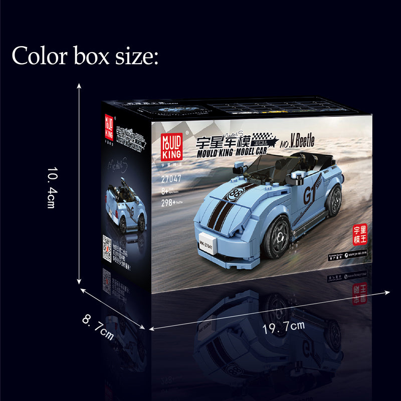Embark on a journey with Mould King's 27047 Beetle, a stunning rendition of the VW Beetle in an 8-stud-wide format. Its eye-catching blue hue combined with the iconic 'GT' decals and sleek design mirrors the classic charm of the real-life Beetle.