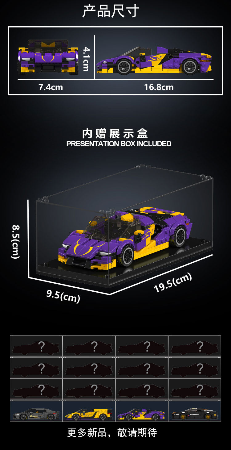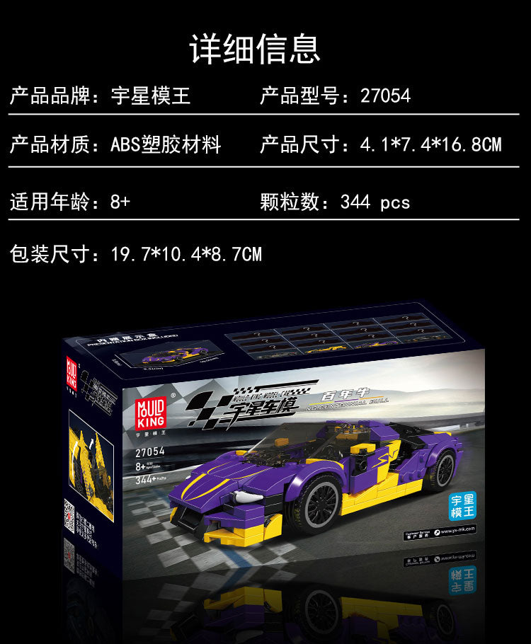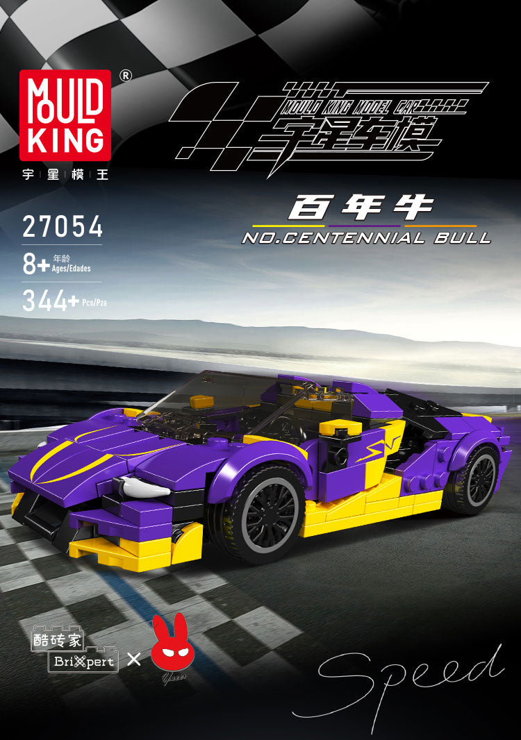 Introducing the Mould King 27054 Centennial Bull, an 8-stud-wide miniature that pays homage to the vibrant spirit of the legendary Centennial Bull supercar. This striking model is a riot of color, with a bold yellow and purple livery that’s sure to turn heads.