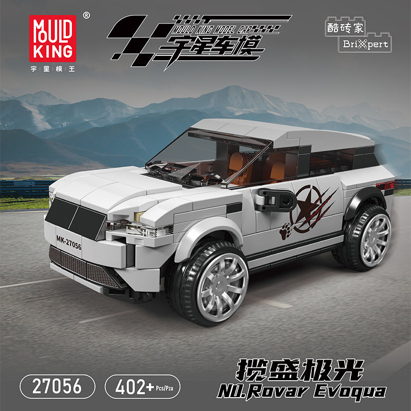 Introducing the Mould King 27056 Evoque, a sophisticated 8-stud-wide model that mirrors the elegance and versatility of the iconic luxury SUV. Its crisp white and muted silver exterior, adorned with a striking graphic, captures the modern design and robust build of its full-sized counterpart.