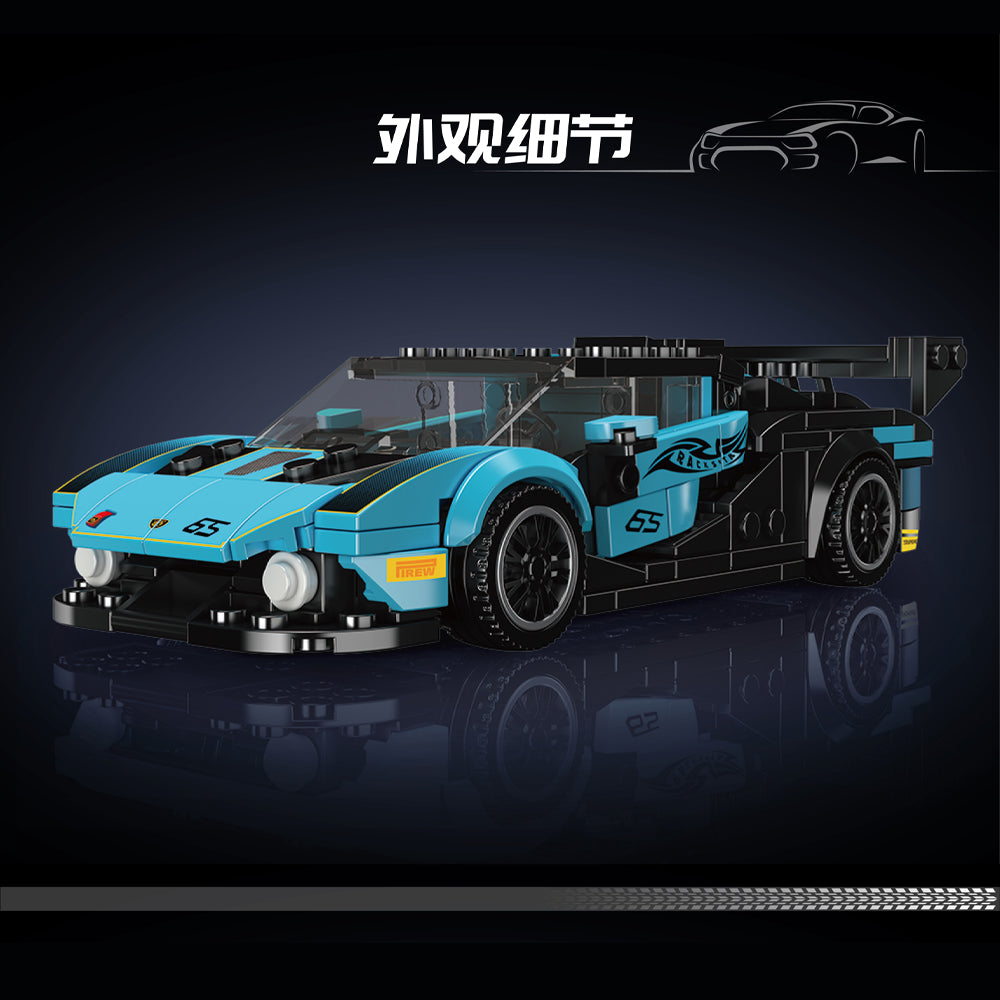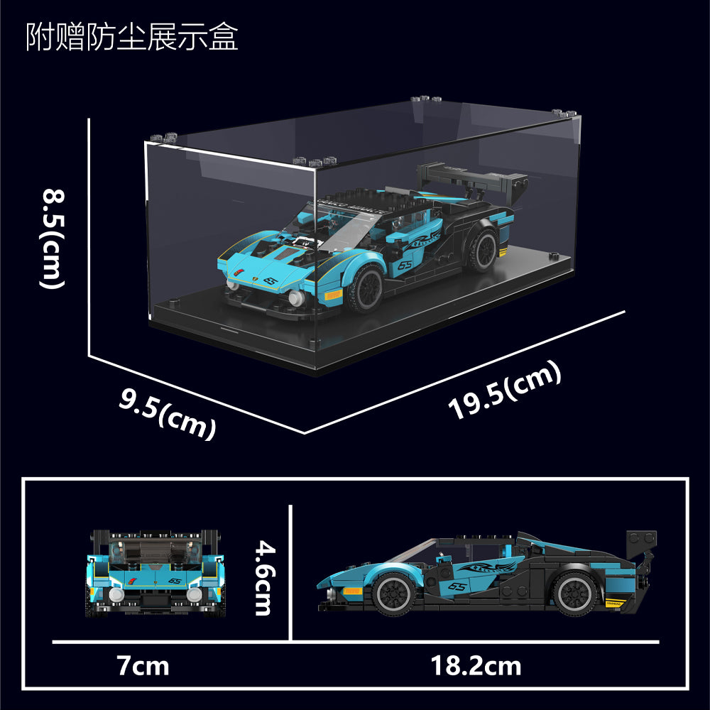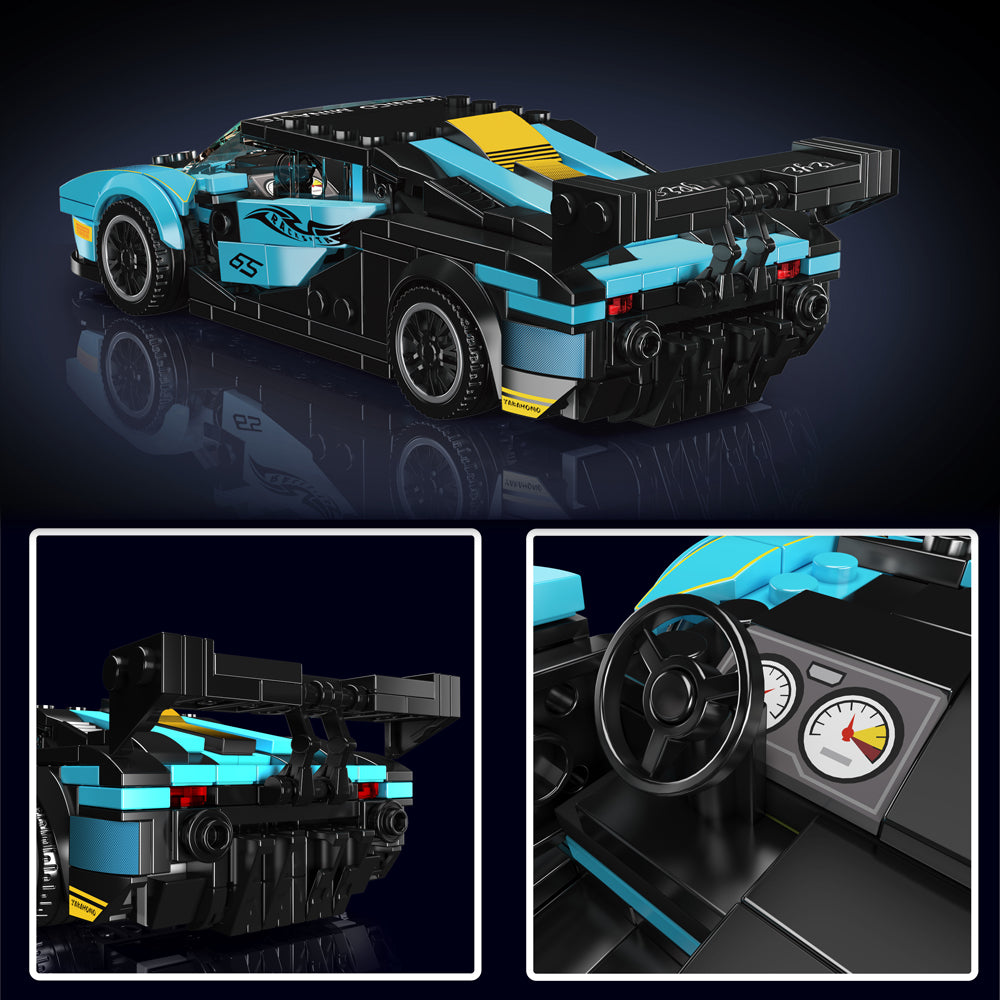 Featuring iconic teal and black livery, this 8-stud-wide model captures the sheer adrenaline and aesthetic beauty of one of the most exclusive track-only hypercars, complete with race number and sponsor decals.