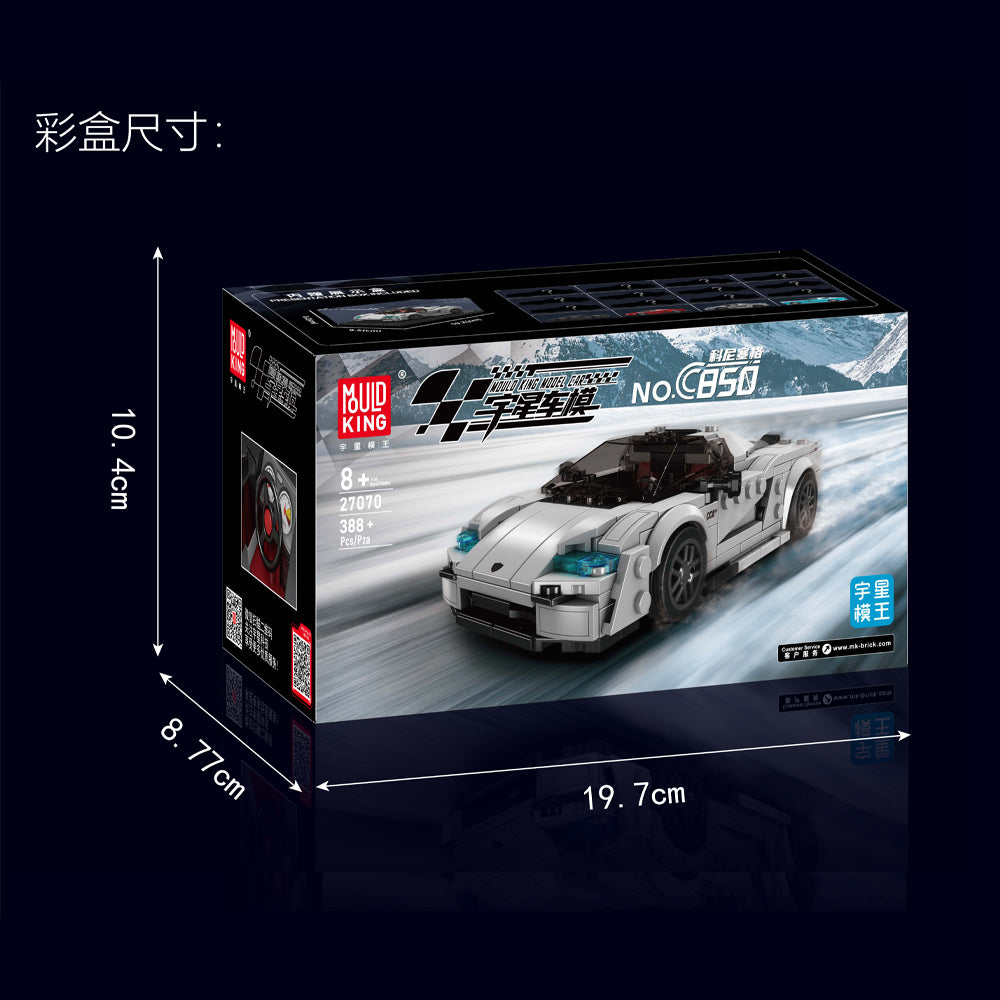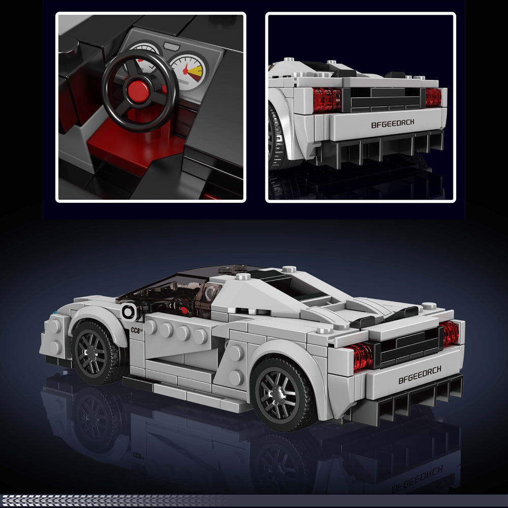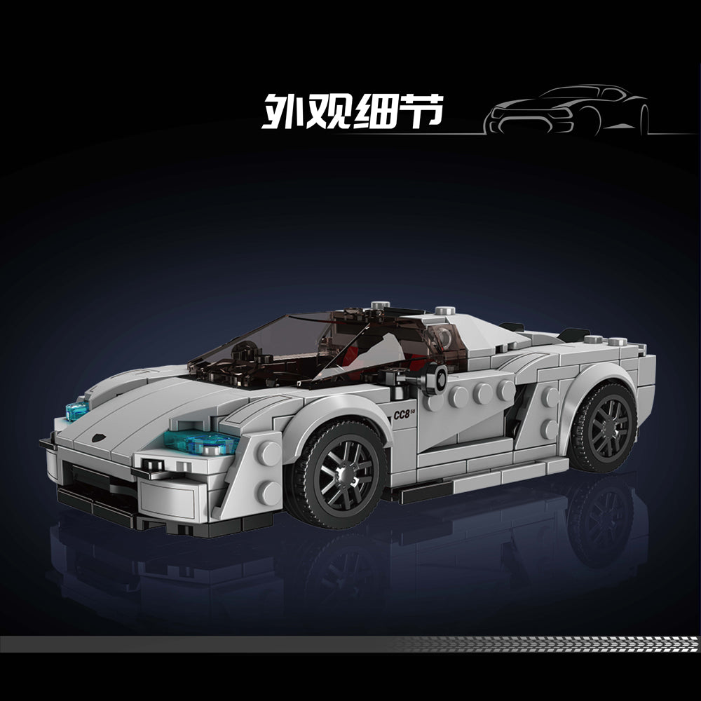 Showcasing a sleek silver and white color scheme, the model highlights intricate detailing such as the characteristic streamlined body shape and vibrant accent stripes. Realistic stickers enhance the model's racing aesthetics, mimicking the original supercar's dynamic appearance.
