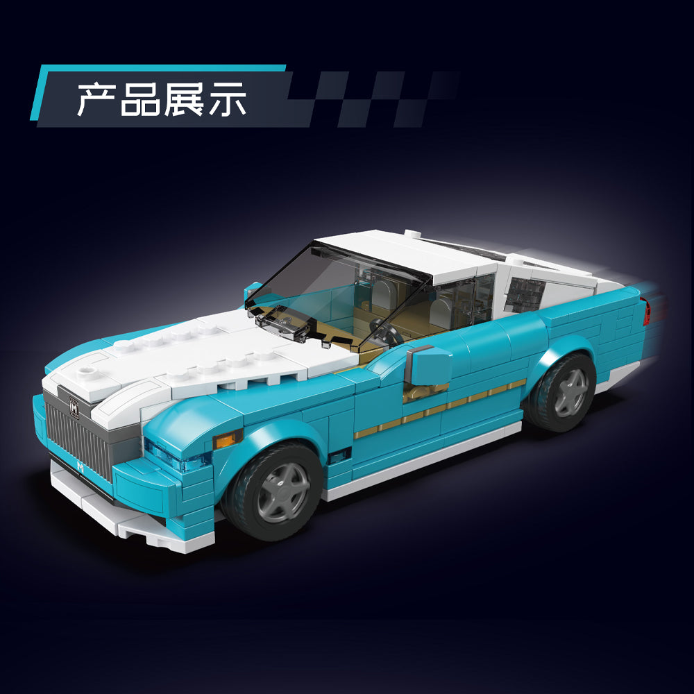Experience the grandeur of the RR Black Badge with this 8-stud-wide model. The elegant turquoise and white hues complement its sleek, low-profile build.