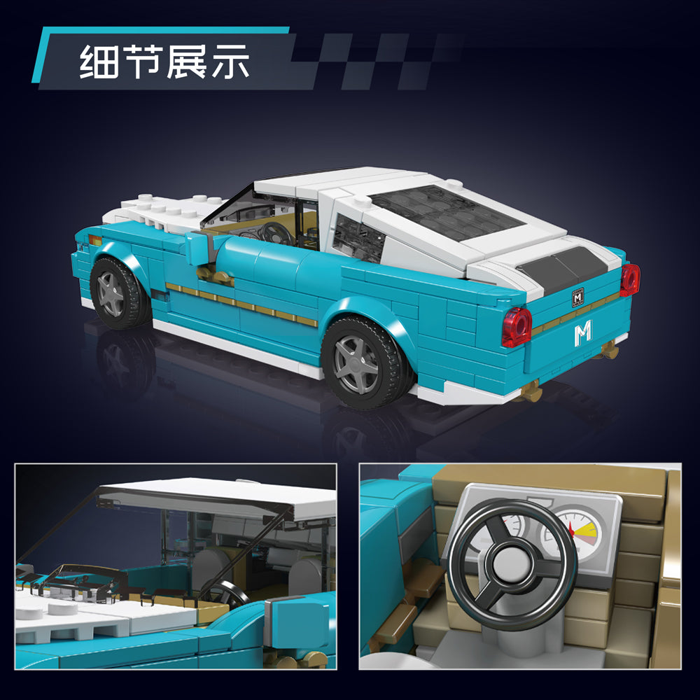 Interior richness meets iconic design in this set. Gold and turquoise seats alongside a detailed dashboard amplify the luxury.