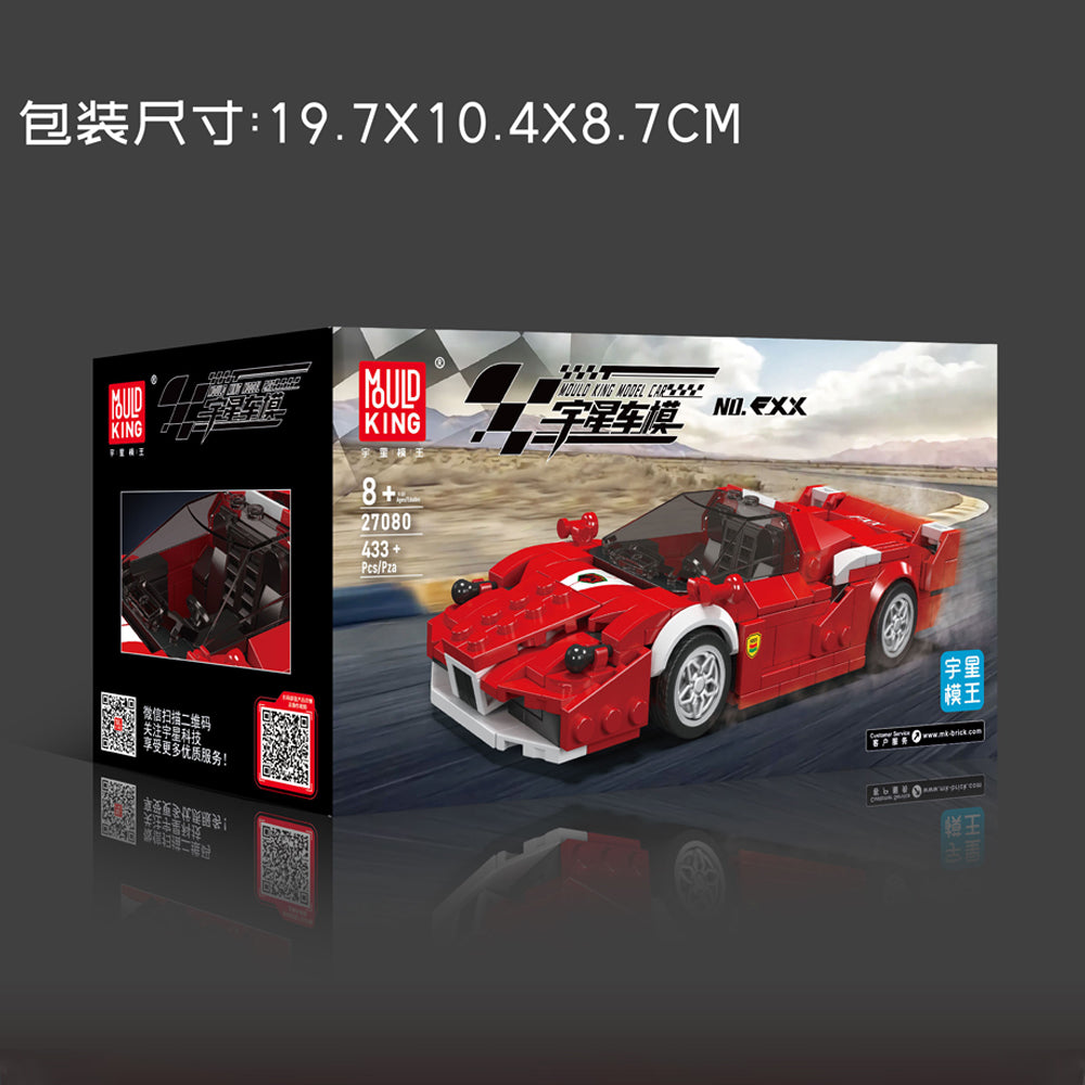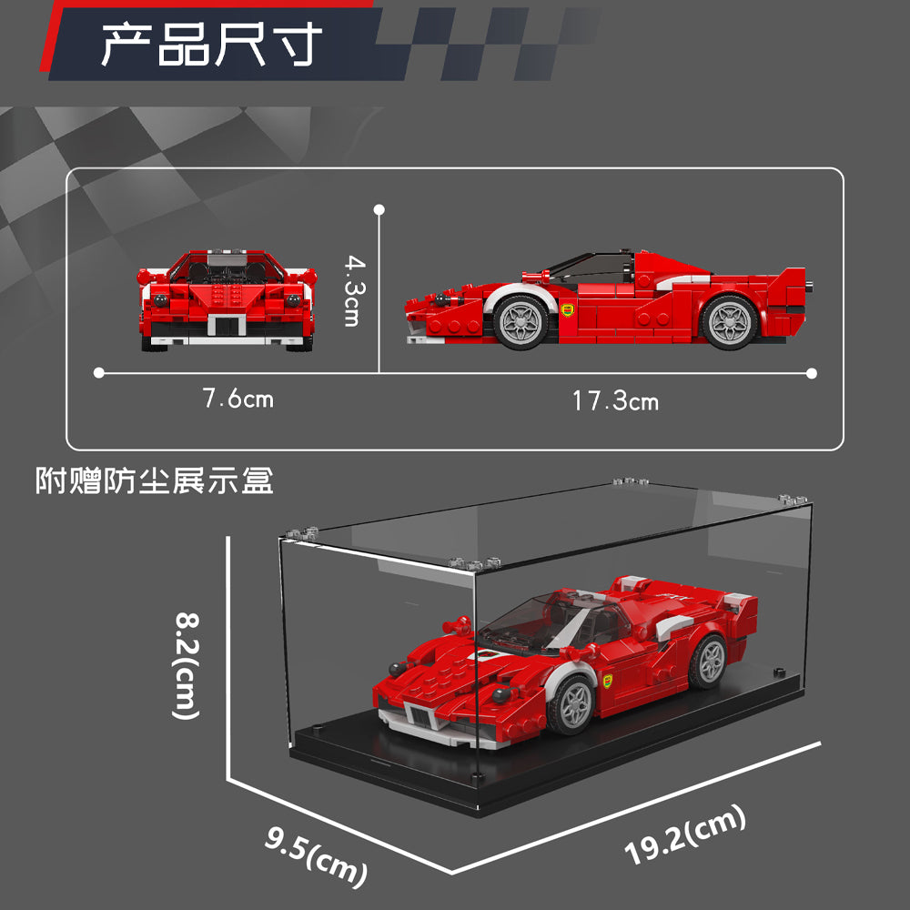 Build and showcase the power of the FXX Supercar with this 8-wide model. Comprising 433 pieces, it captures the iconic red racing design in a compact, stylish build. Features a sleek red body with aerodynamic details, including a wide front grille and streamlined body shape. Perfect for racing enthusiasts and model collectors alike.